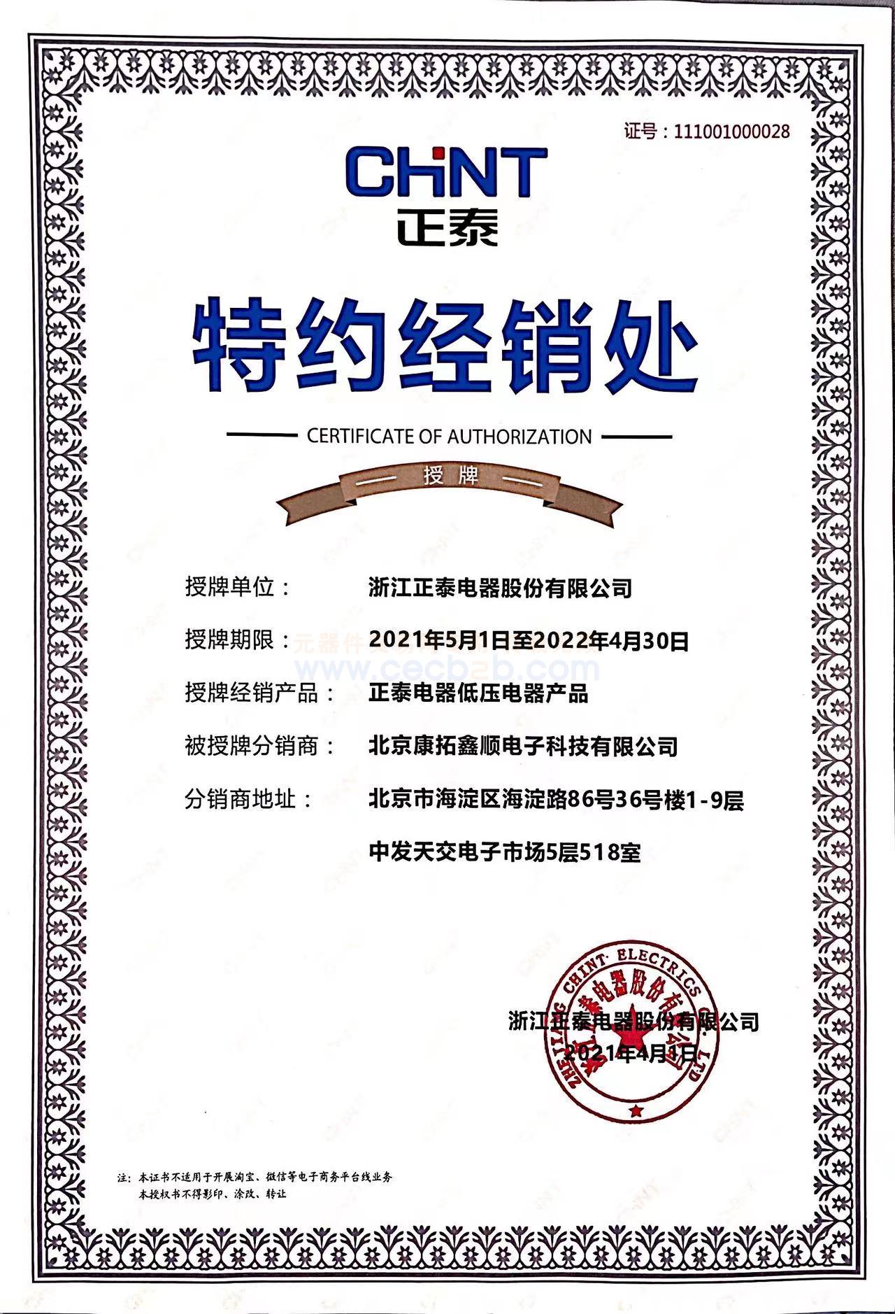 品牌授权代理证书:
